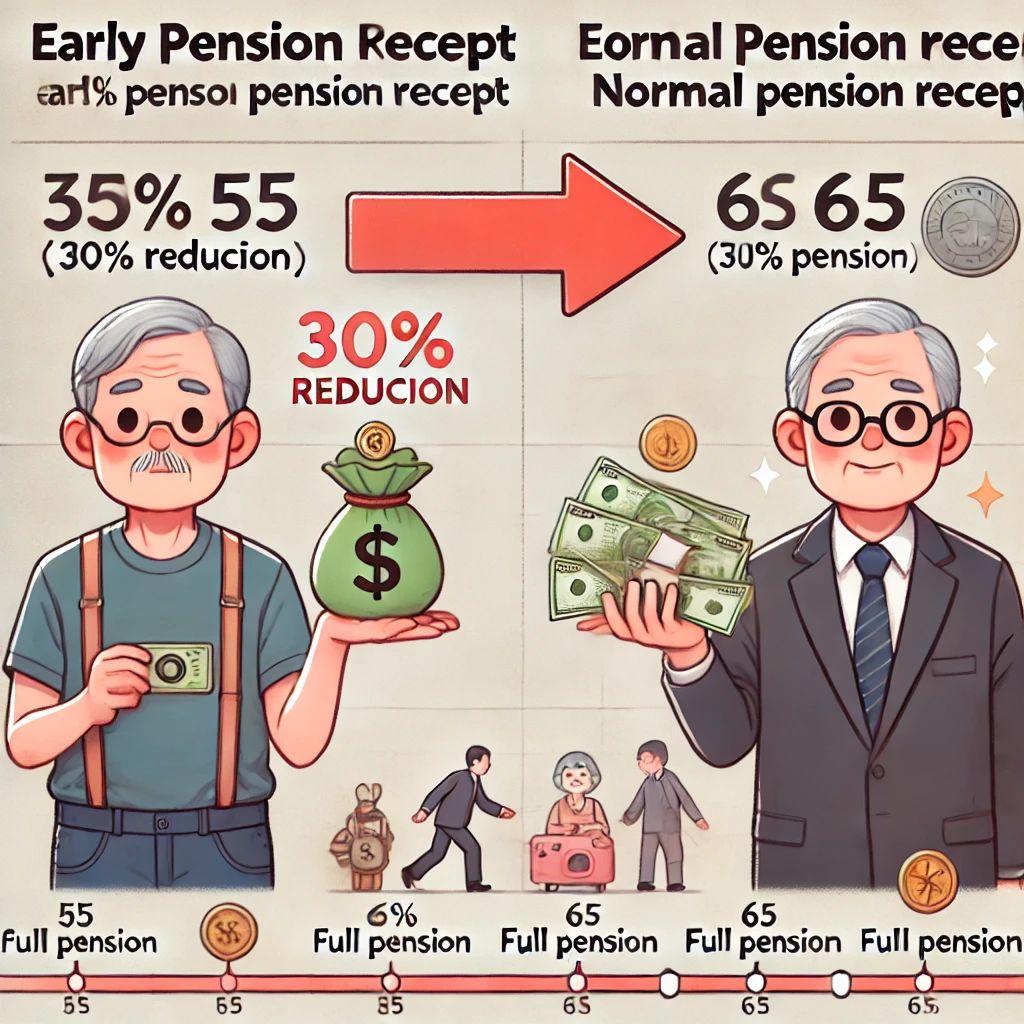 ※ 예: 원래 연금이 월 100만 원인데 5년 일찍 받으면, 월 70만 원만 받게 되는 구조입니다.