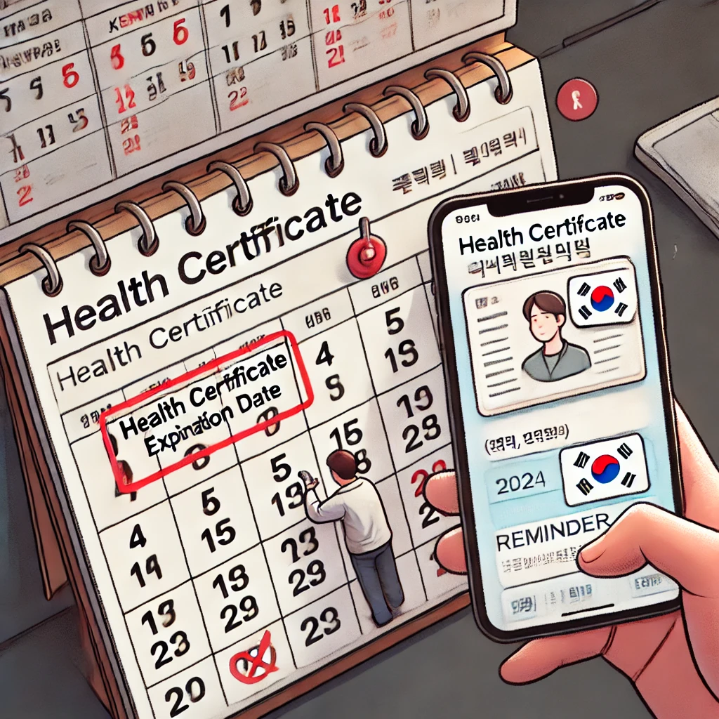 - 보건소 또는 지정 병원에서만 보건증 검사가 유효합니다.
