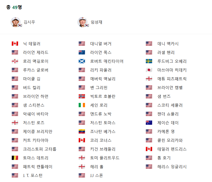 | 한국 선수 | 임성재, 김시우 등 출전 예정 |